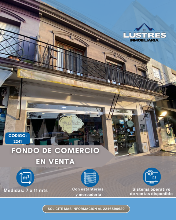 En venta fondo de comercio en pleno funcionamiento, con todos los elementos necesarios para continuar la actividad de manera inmediata.