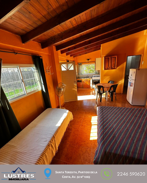 •1 Dormitorio c/ cama matrimonial y marinera. • 1 Dormitorio principal con cama matrimonial y placar empotrado • cocina-comedor y living amplio con vistas al patio