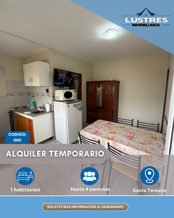 DEPARTAMENTO 2 AMBIENTES EQUIPADO PARA HASTA 4 PERSONAS.